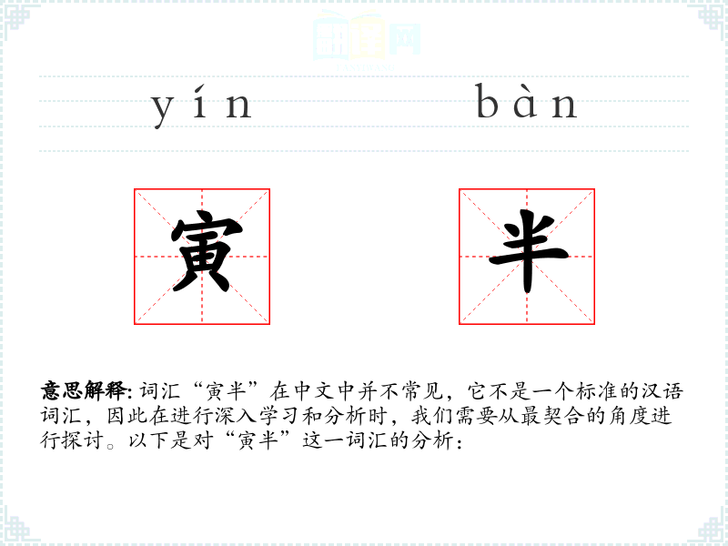词汇“寅半”在中文中并不常见,它不是一个标准的汉语词汇,因此在进行深入学*和分析时,我们需要从最契合的角度进行探讨。以下是对“寅半”这一词汇的分析: