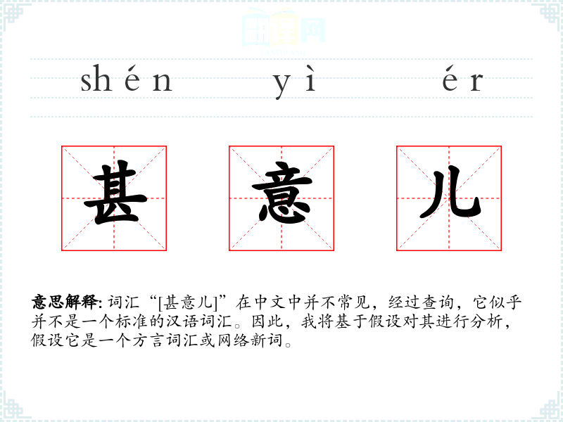 词汇“[甚意儿]”在中文中并不常见,经过查询,它似乎并不是一个标准的汉语词汇。因此,我将基于假设对其进行分析,假设它是一个方言词汇或网络新词。