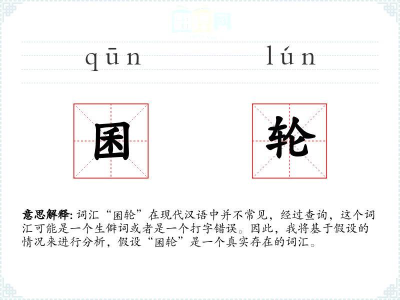 词汇“囷轮”在现代汉语中并不常见,经过查询,这个词汇可能是一个生僻词或者是一个打字错误。因此,我将基于假设的情况来进行分析,假设“囷轮”是一个真实存在的词汇。