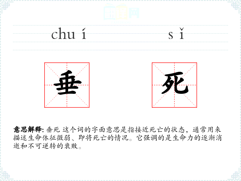 "垂死"的意思解释、垂死是什么意思由翻译网汉语词典查词提供。
