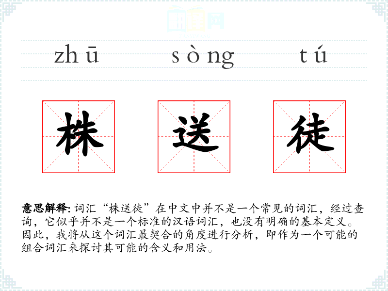 由于“株送徒”不是一个标准词汇,我们无法总结对其的理解。但通过这个分析过程,我们可以看到,对于一个不明确的词汇,我们可以从多个角度进行假设性的探讨,从而增进对语言和词汇的理解。