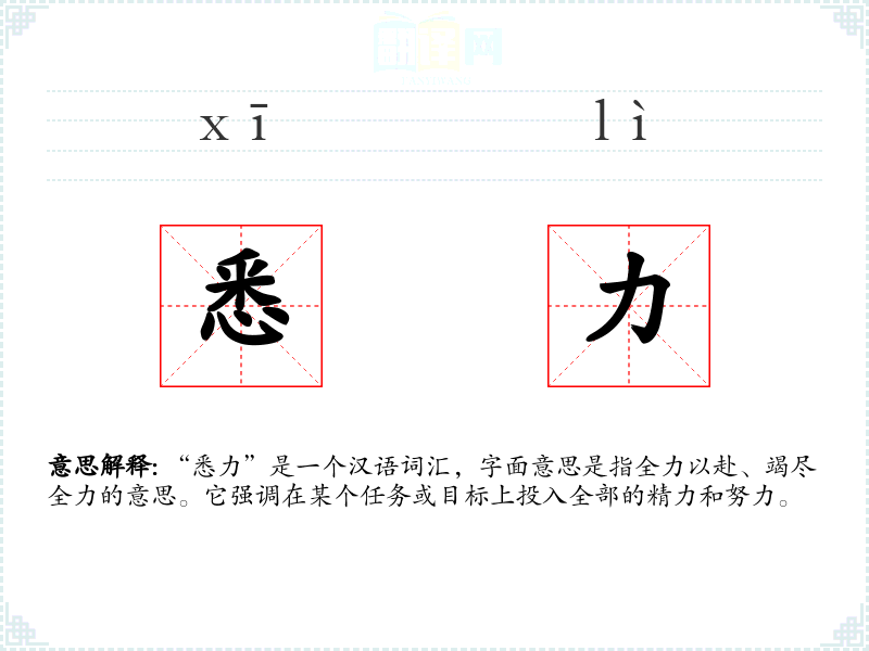 “悉力”是一个汉语词汇,字面意思是指全力以赴、竭尽全力的意思。它强调在某个任务或目标上投入全部的精力和努力。