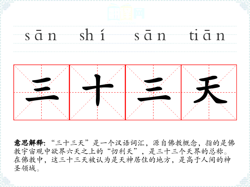 "三十三天"的意思解释、三十三天是什么意思由翻译网汉语词典查词提供。