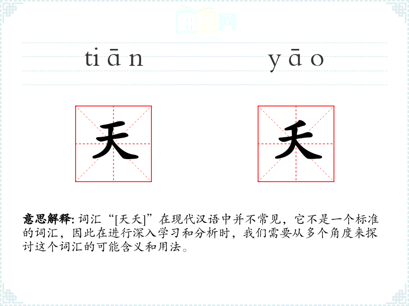 词汇“[天夭]”在现代汉语中并不常见,它不是一个标准的词汇,因此在进行深入学*和分析时,我们需要从多个角度来探讨这个词汇的可能含义和用法。
