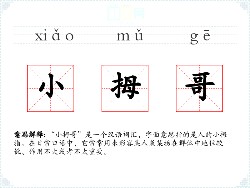 - 文学语境:在文学作品中,“小拇哥”可能被用来比喻那些不起眼但有时又能发挥关键作用的角色。