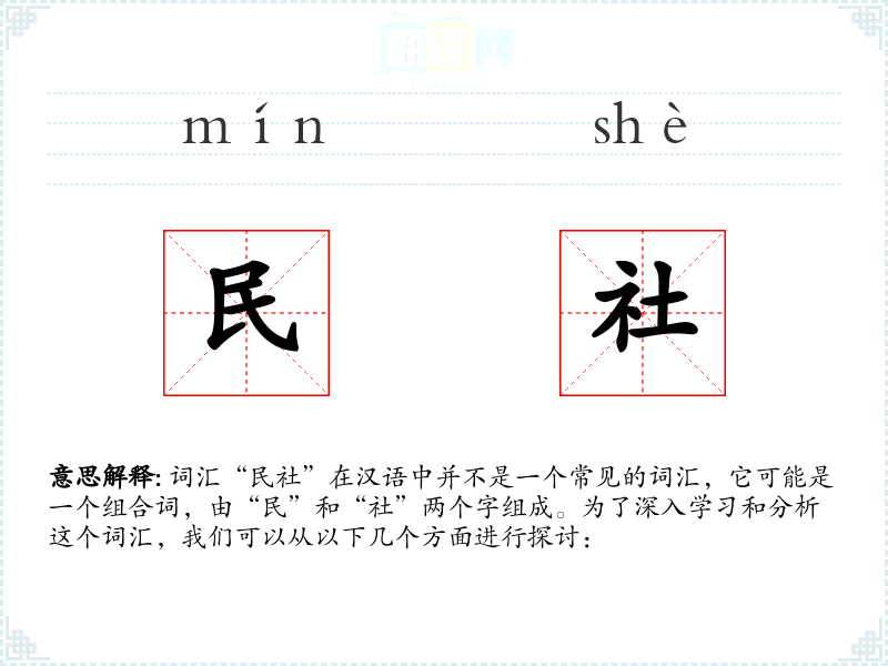 - “民”和“社”都是古汉语词汇,历史悠久。
