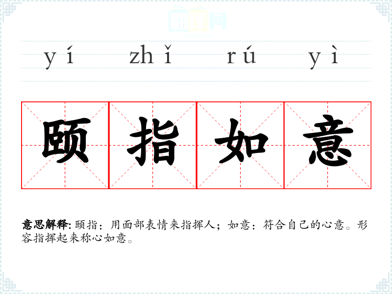 颐指:用面部表情来指挥人;如意:符合自己的心意。形容指挥起来