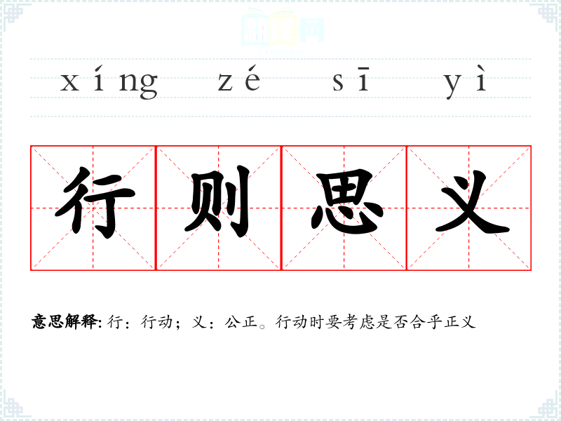 行:行动;义:公正。行动时要考虑是否合乎正义