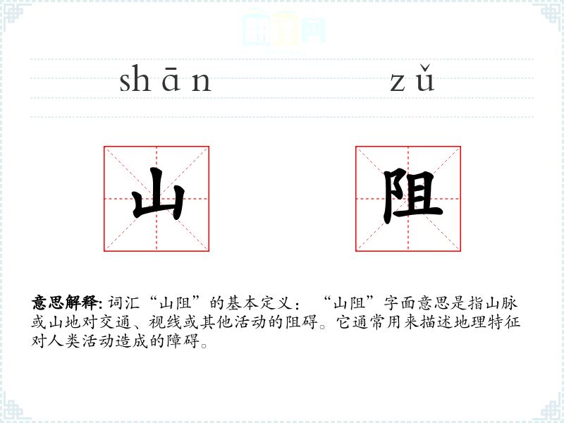 同义词与反义词: 同义词:山障、山碍、山隔 反义词:山通、山畅、山敞
