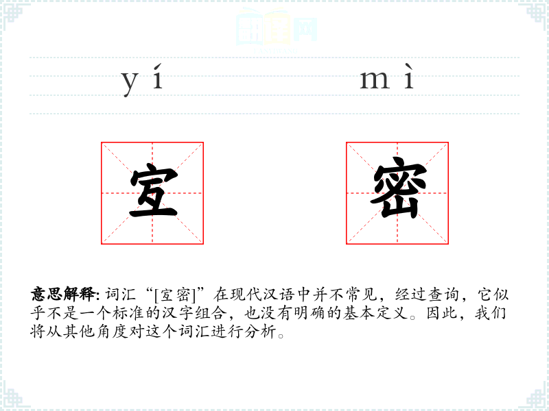 词汇“[宐密]”在现代汉语中并不常见,经过查询,它似乎不是一个标准的汉字组合,也没有明确的基本定义。因此,我们将从其他角度对这个词汇进行分析。
