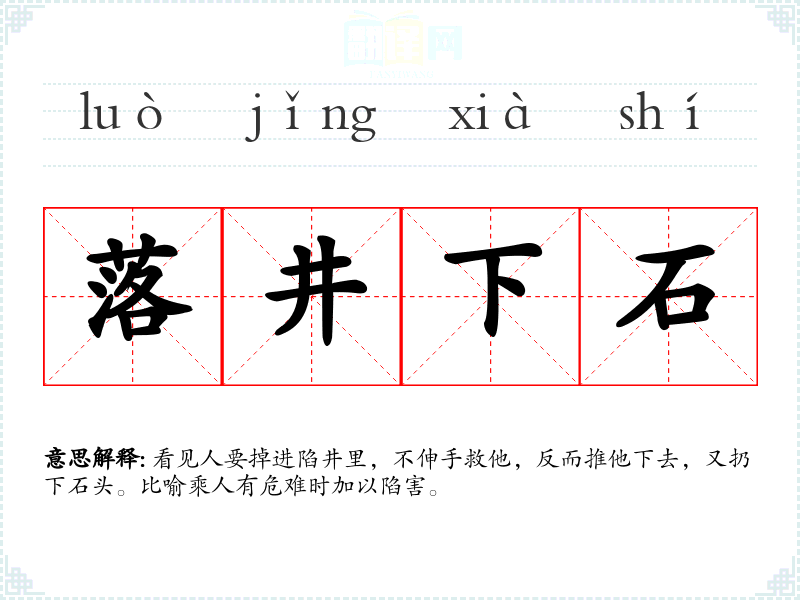 "落井下石"的意思解释、落井下石是什么意思由翻译网汉语词典查词提供。