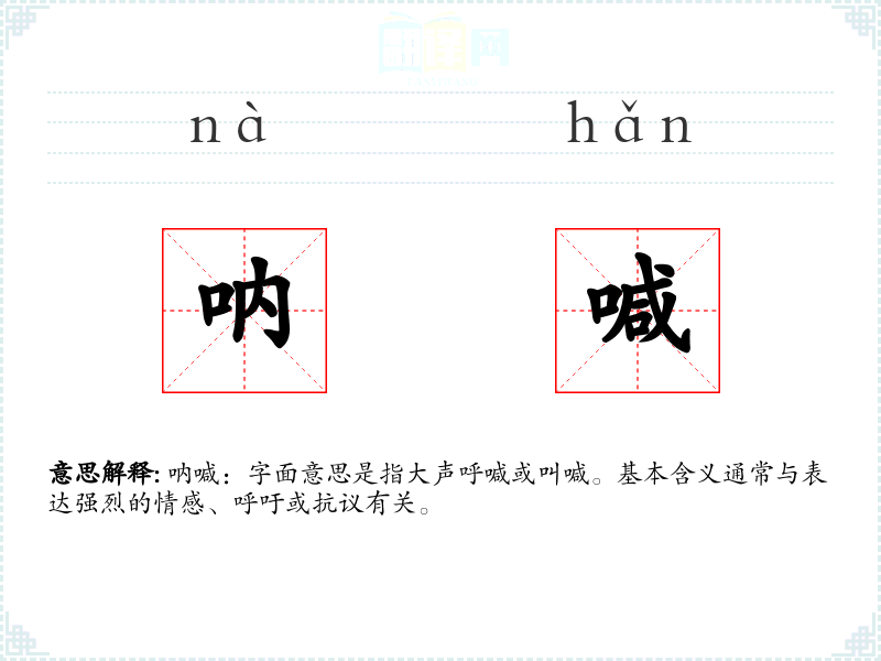呐喊:字面意思是指大声呼喊或叫喊。基本含义通常与表达强烈的情感、呼吁或抗议有关。