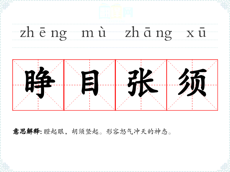 - nù mù zhēng méi怒目睁眉