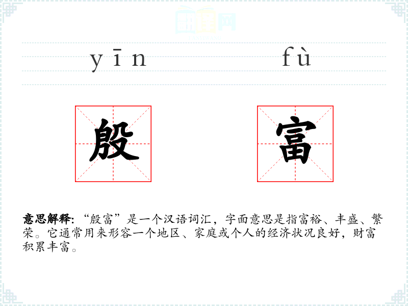 “殷富”是一个汉语词汇,字面意思是指富裕、丰盛、繁荣。它通常用来形容一个地区、家庭或个人的经济状况良好,财富积累丰富。