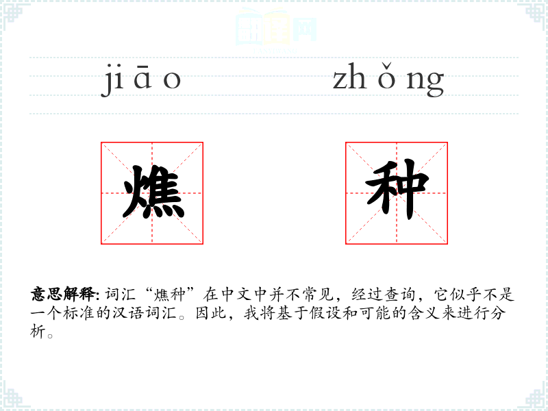 词汇“燋种”在中文中并不常见,经过查询,它似乎不是一个标准的汉语词汇。因此,我将基于假设和可能的含义来进行分析。