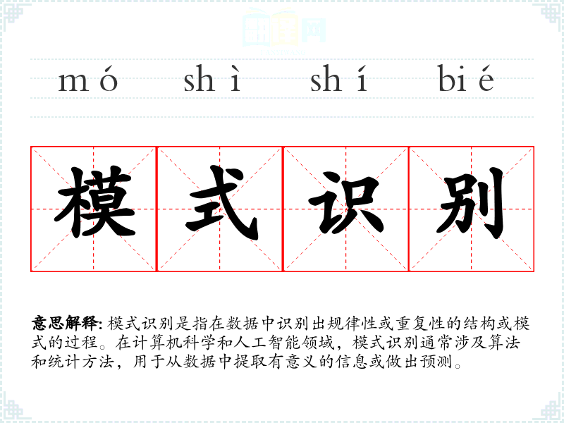 "模式识别"的意思解释、模式识别是什么意思由翻译网汉语词典查词提供。