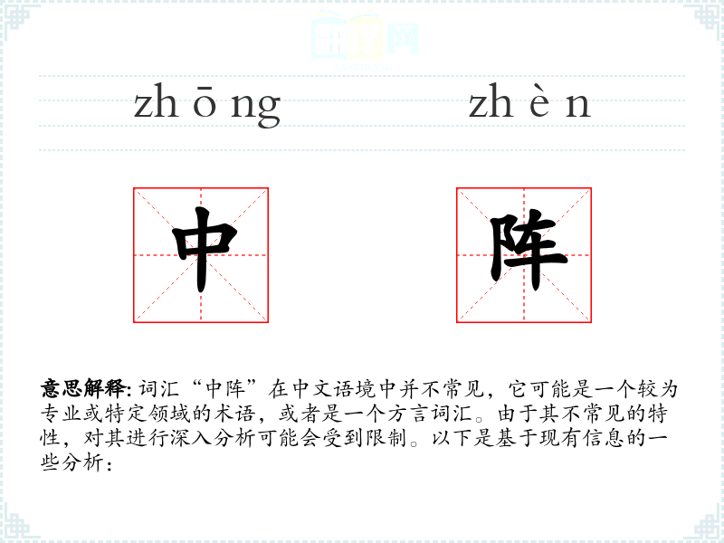 对于军事爱好者或历史研究者,“中阵”可能唤起对古代战争场景的联想,带来一种历史厚重感和战术策略的思考。