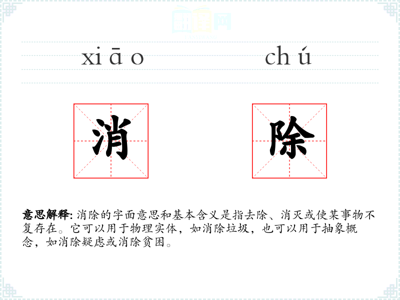“消除”一词源于古汉语,由“消”和“除”两个字组成。在古代文献中,“消”常指消散、消失,“除”指去除、清除。随着时间的推移,这两个字结合在一起,形成了现代汉语中的“消除”。