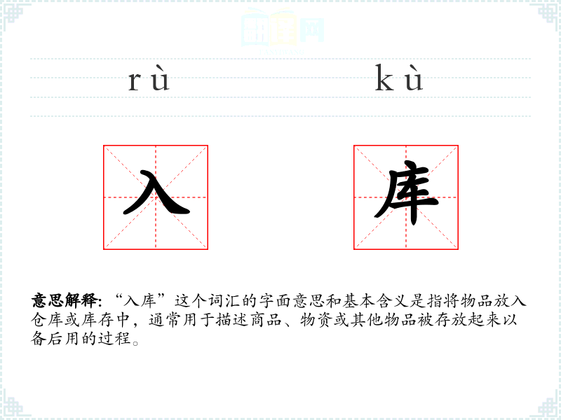 "入库"的意思解释、入库是什么意思由翻译网汉语词典查词提供。
