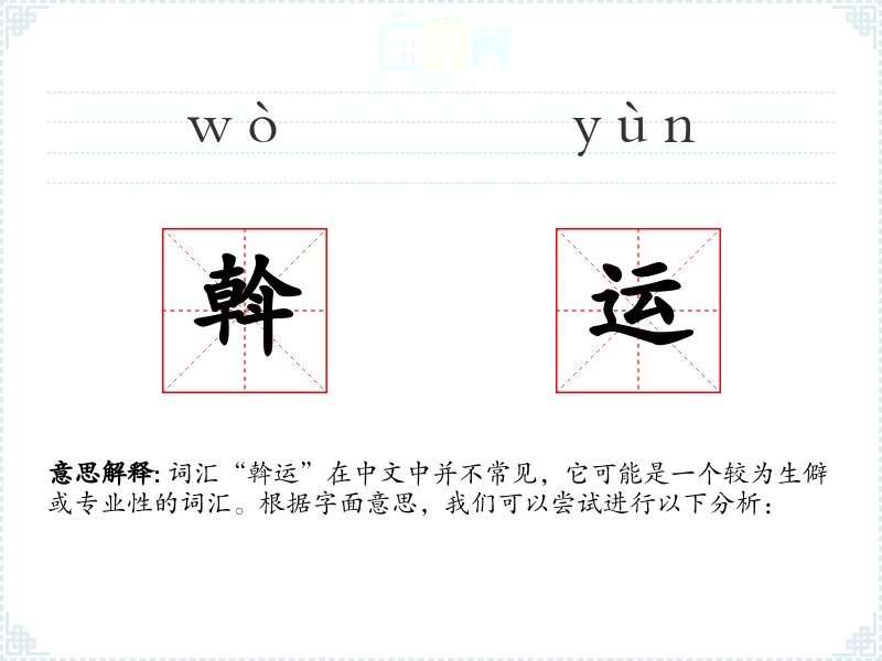 词汇“斡运”在中文中并不常见,它可能是一个较为生僻或专业性的词汇。根据字面意思,我们可以尝试进行以下分析: