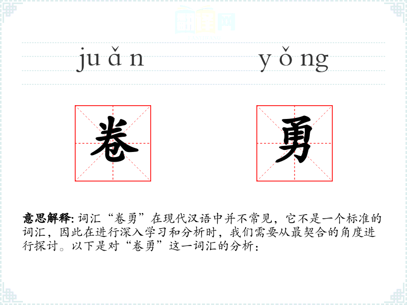 由于“卷勇”不是一个标准词汇,我们无法探讨其词源和历史演变。