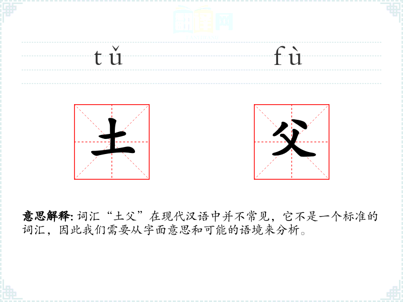 词汇“土父”在现代汉语中并不常见,它不是一个标准的词汇,因此我们需要从字面意思和可能的语境来分析。