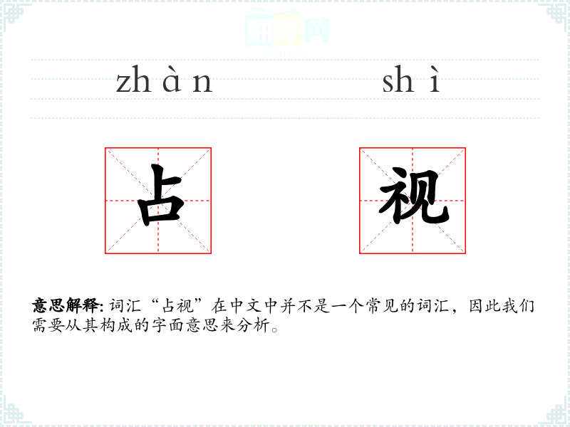 词汇“占视”在中文中并不是一个常见的词汇,因此我们需要从其构成的字面意思来分析。