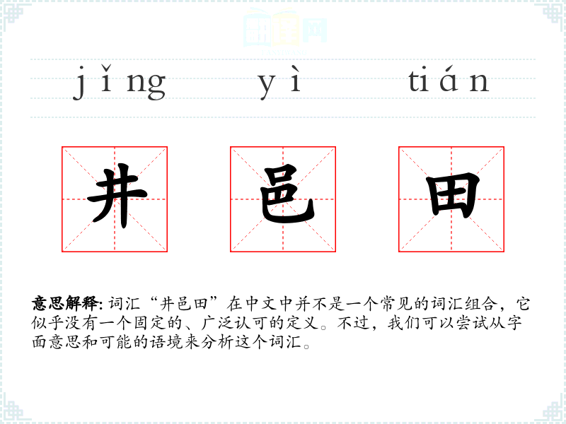 词汇“井邑田”在中文中并不是一个常见的词汇组合,它似乎没有一个固定的、广泛认可的定义。不过,我们可以尝试从字面意思和可能的语境来分析这个词汇。
