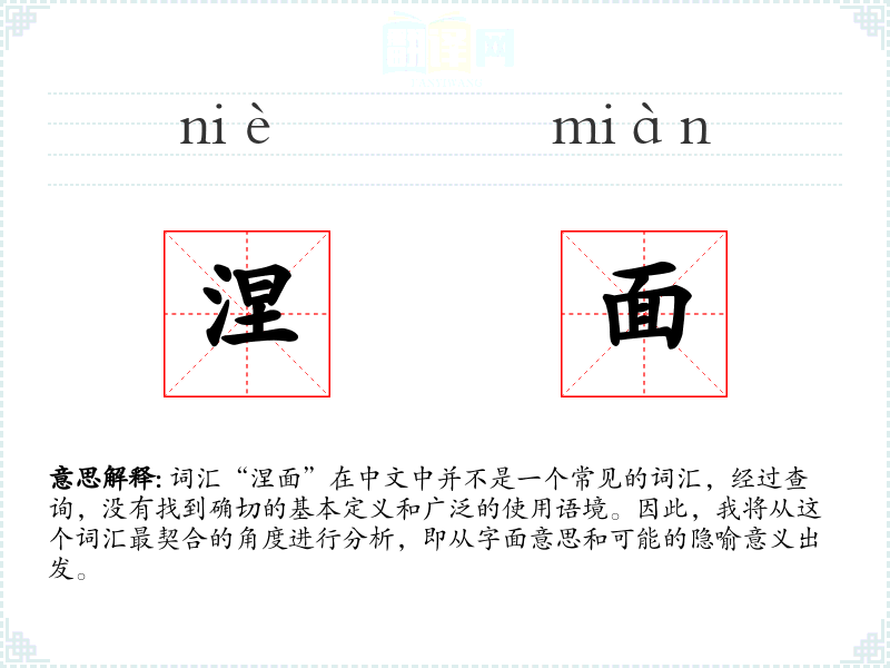 由于“涅面”不是一个标准词汇,我们可以尝试从字面意思进行解释: