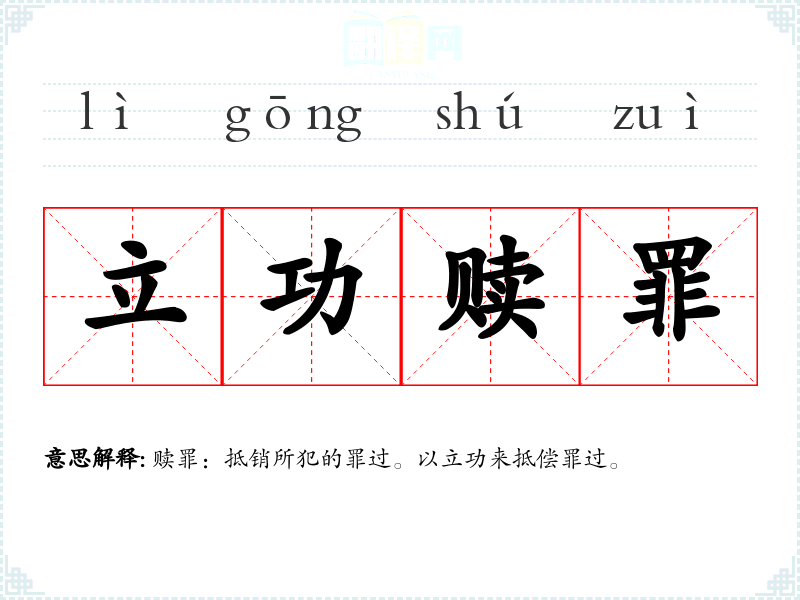 赎罪:抵销所犯的罪过。以立功来抵偿罪过。