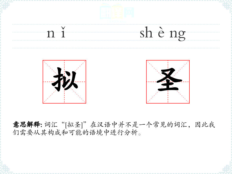 词汇“[拟圣]”在汉语中并不是一个常见的词汇,因此我们需要从其构成和可能的语境中进行分析。