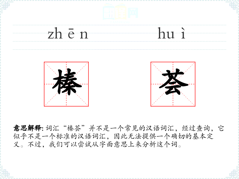 词汇“榛荟”并不是一个常见的汉语词汇,经过查询,它似乎不是一个标准的汉语词汇,因此无法提供一个确切的基本定义。不过,我们可以尝试从字面意思上来分析这个词。