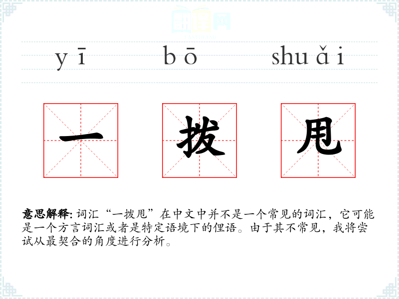词汇“一拨甩”在中文中并不是一个常见的词汇,它可能是一个方言词汇或者是特定语境下的俚语。由于其不常见,我将尝试从最契合的角度进行分析。
