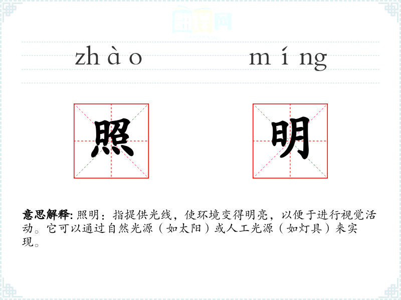 "照明"的意思解释、照明是什么意思由翻译网汉语词典查词提供。