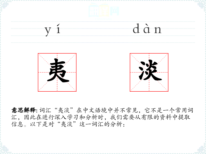 词汇“夷淡”在中文语境中并不常见,它不是一个常用词汇,因此在进行深入学*和分析时,我们需要从有限的资料中提取信息。以下是对“夷淡”这一词汇的分析: