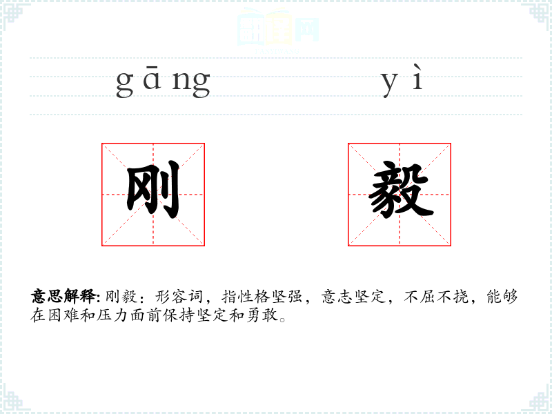 刚毅:形容词,指性格坚强,意志坚定,不屈不挠,能够在困难和压力面前保持坚定和勇敢。