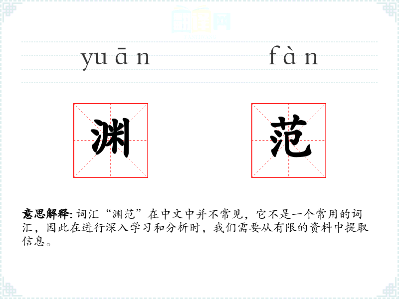 词汇“渊范”在中文中并不常见,它不是一个常用的词汇,因此在进行深入学习和分析时,我们需要从有限的资料中提取信息。