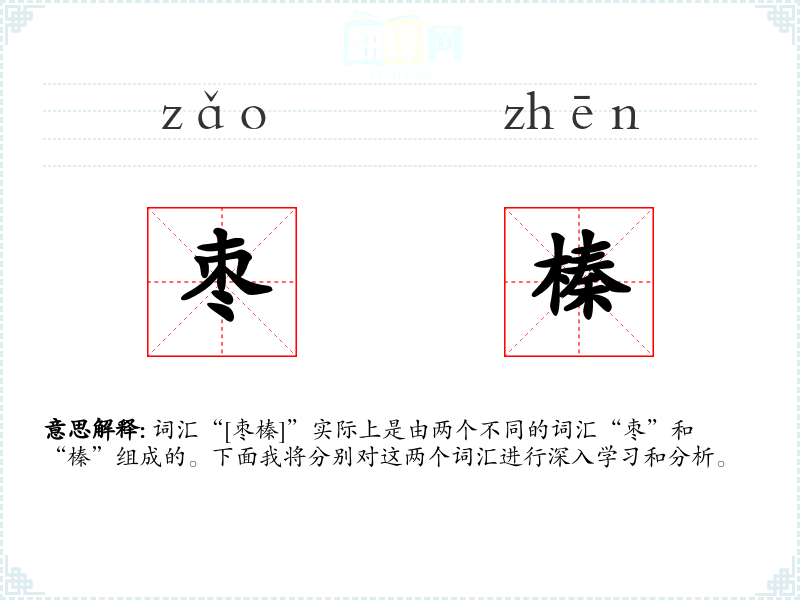 词汇“[枣榛]”实际上是由两个不同的词汇“枣”和“榛”组成的。下面我将分别对这两个词汇进行深入学*和分析。