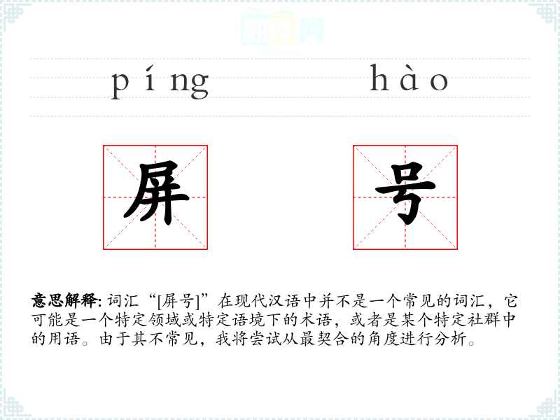 词汇“[屏号]”在现代汉语中并不是一个常见的词汇,它可能是一个特定领域或特定语境下的术语,或者是某个特定社群中的用语。由于其不常见,我将尝试从最契合的角度进行分析。