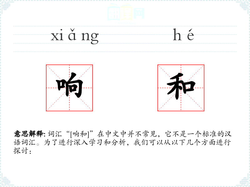 词汇“[响和]”在中文中并不常见,它不是一个标准的汉语词汇。为了进行深入学习和分析,我们可以从以下几个方面进行探讨: