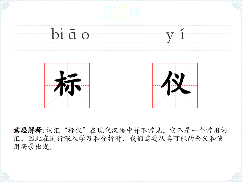 词汇“标仪”在现代汉语中并不常见,它不是一个常用词汇,因此在进行深入学*和分析时,我们需要从其可能的含义和使用场景出发。