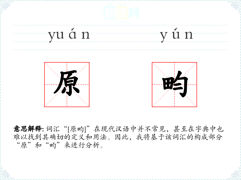 词汇“[原畇]”在现代汉语中并不常见,甚至在字典中也难以找到其确切的定义和用法。因此,我将基于该词汇的构成部分“原”和“畇”来进行分析。