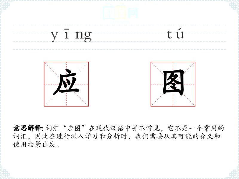 词汇“应图”在现代汉语中并不常见,它不是一个常用的词汇,因此在进行深入学习和分析时,我们需要从其可能的含义和使用场景出发。