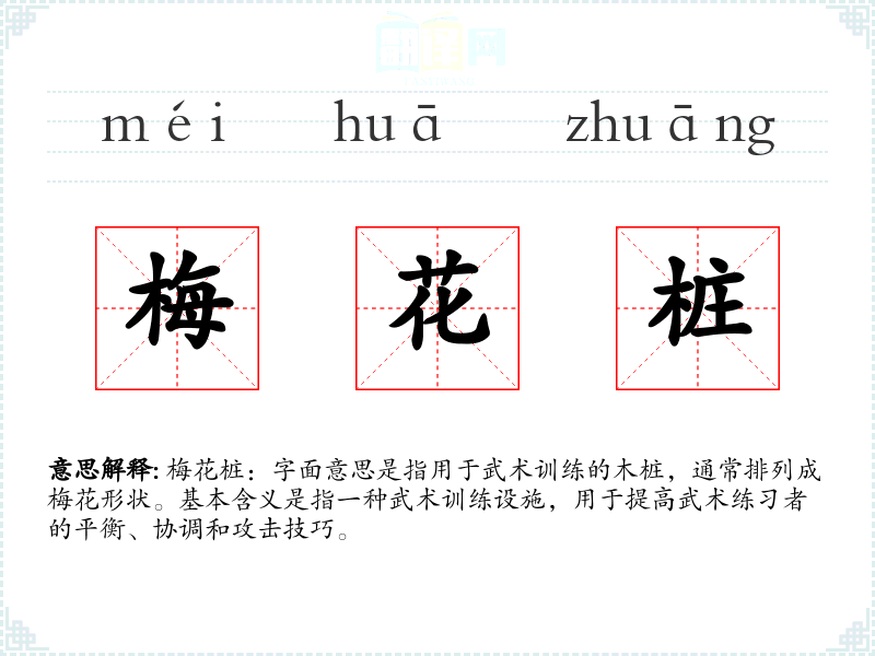 - 反义词:无(梅花桩是特定术语,没有直接的反义词)
