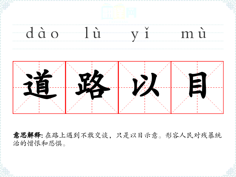 在路上遇到不敢交谈,只是以目示意。形容人民对残暴统治的憎恨和恐惧。