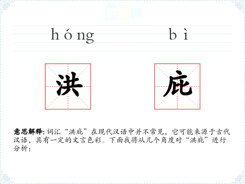 词汇“洪庇”在现代汉语中并不常见,它可能来源于古代汉语,具有一定的文言色彩。下面我将从几个角度对“洪庇”进行分析: