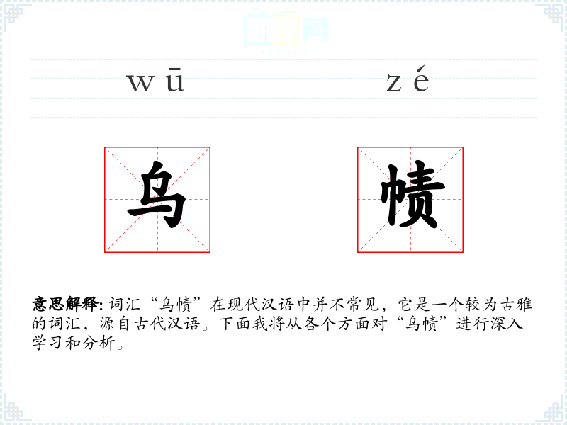 “乌”字在古代汉语中意为黑色,“帻”则是指头巾或帽子。随着时间的推移,这个词汇的使用频率逐渐降低,现代汉语中更多使用“黑帽”或“黑巾”等词汇。