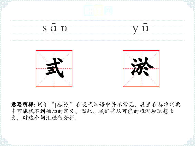 词汇“[叁淤]”在现代汉语中并不常见,甚至在标准词典中可能找不到确切的定义。因此,我们将从可能的推测和联想出发,对这个词汇进行分析。