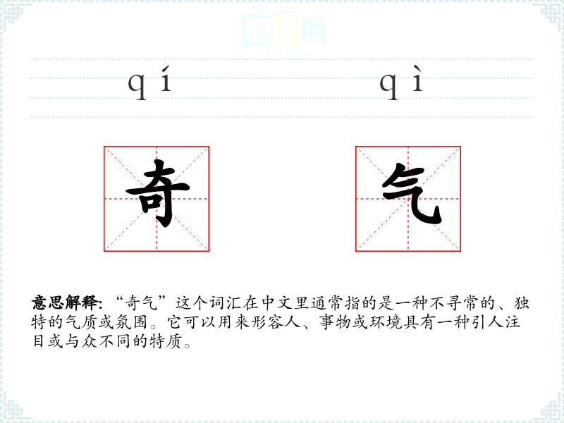 “奇气”由“奇”和“气”两个字组成。“奇”字古已有之,意为不寻常、罕见;“气”字则指气质、氛围。两者结合,形成了描述不寻常气质或氛围的词汇。