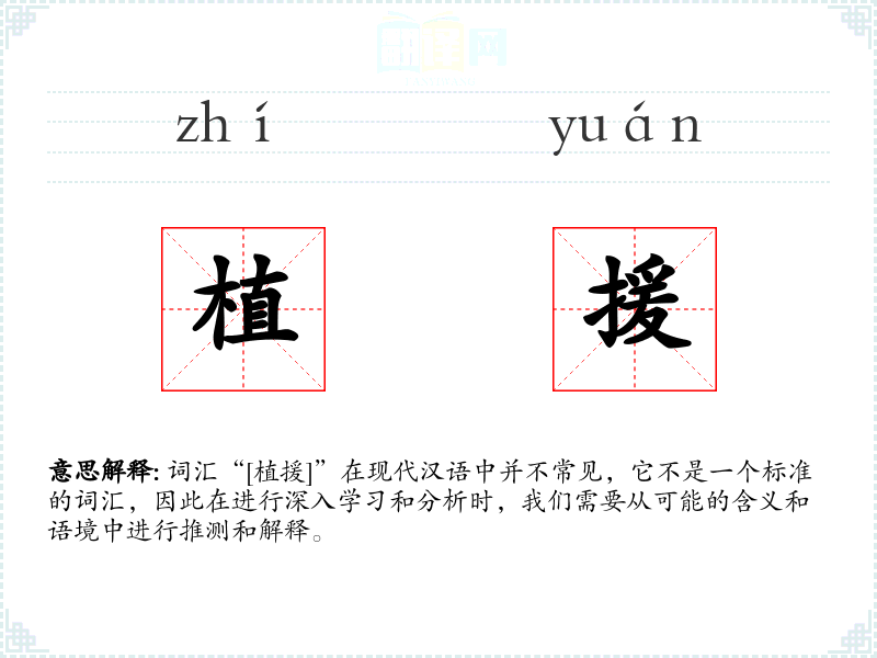 由于“[植援]”不是一个标准词汇,我们可以尝试从字面意思来解释: